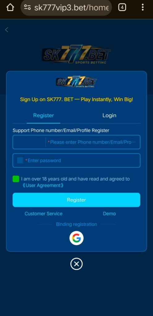 Registration and Login SK777 Bet Game.