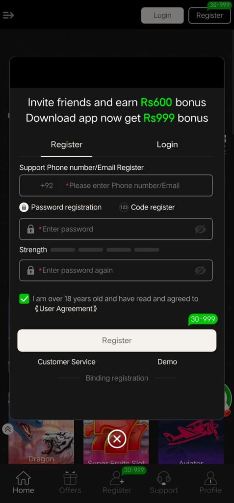 2. At the opening page, there is Sign Up or Register. Tap it.